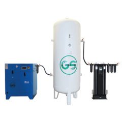 GAZ SYSTEMES compressed air systems include a compressor, which can be of various technology, a compressed air tank duly coated, an air dryer (desiccant or refrigerant), a medical grade filtration system and a pressure reducing device.
